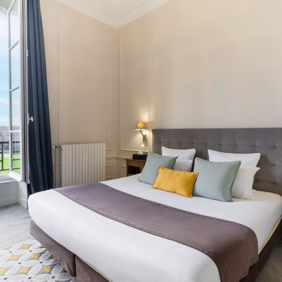 L’hôtel, décoré avec raffinement, offre une vue apaisante sur un parc verdoyant de 400 hectares et tout le confort nécessaire pour un séjour inoubliable.