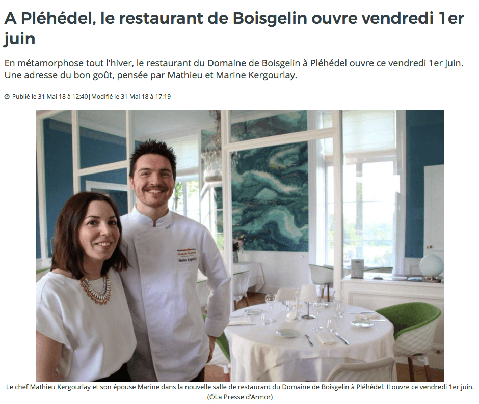 Marine et Mathieu Kergourlay ont pris les rênes du restaurant-hôtel du château de Boisgelin, il y a tout juste six mois.