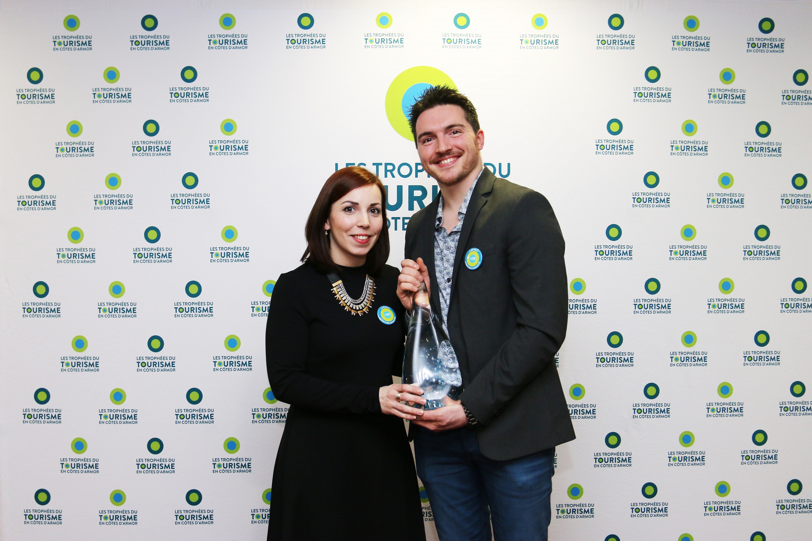 Marine et Mathieu Kergourlay ont reçu le premier trophée de l’innovation du tourisme des Côtes-d’Armor pour la relance du l’hôtel-restaurant du Domaine de Boisgelin à Pléhédel.