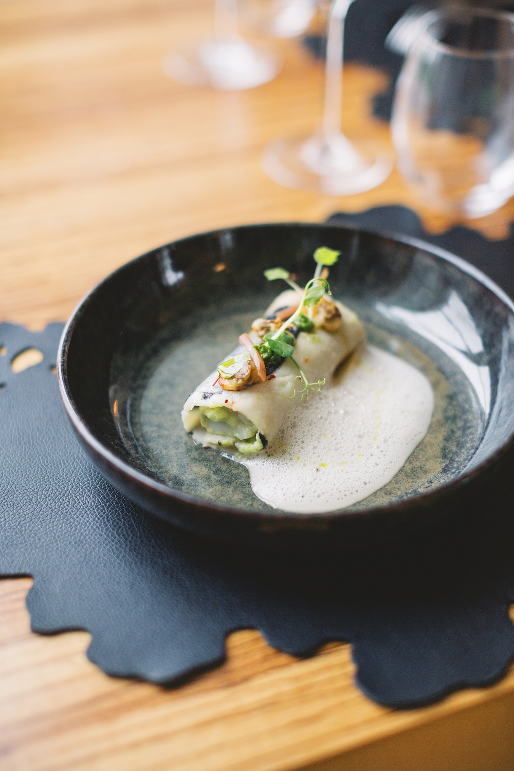 Ici, pas d’artifice ni d’esbroufe : l’essentiel prime. Une cuisine raffinée qui respecte profondément le produit et cherche avant tout à en révéler la pureté des saveurs.